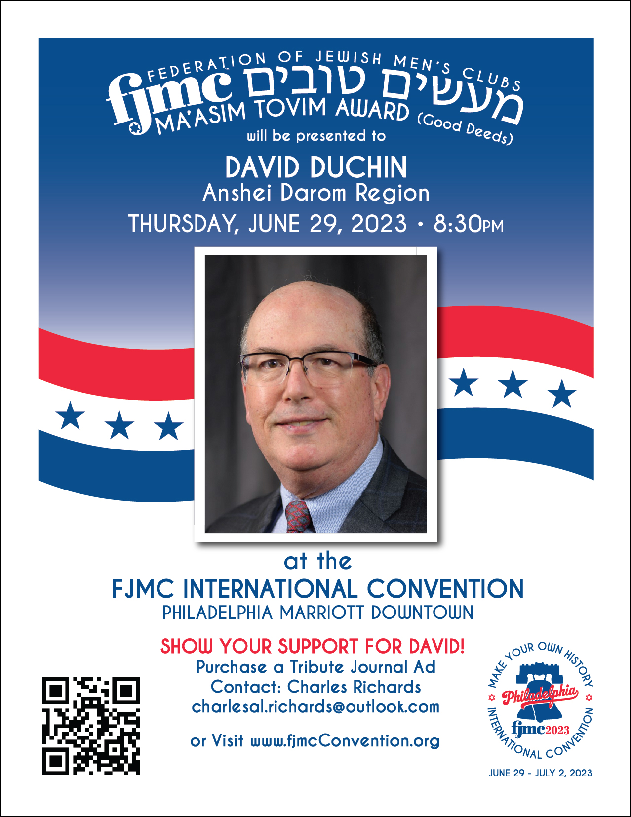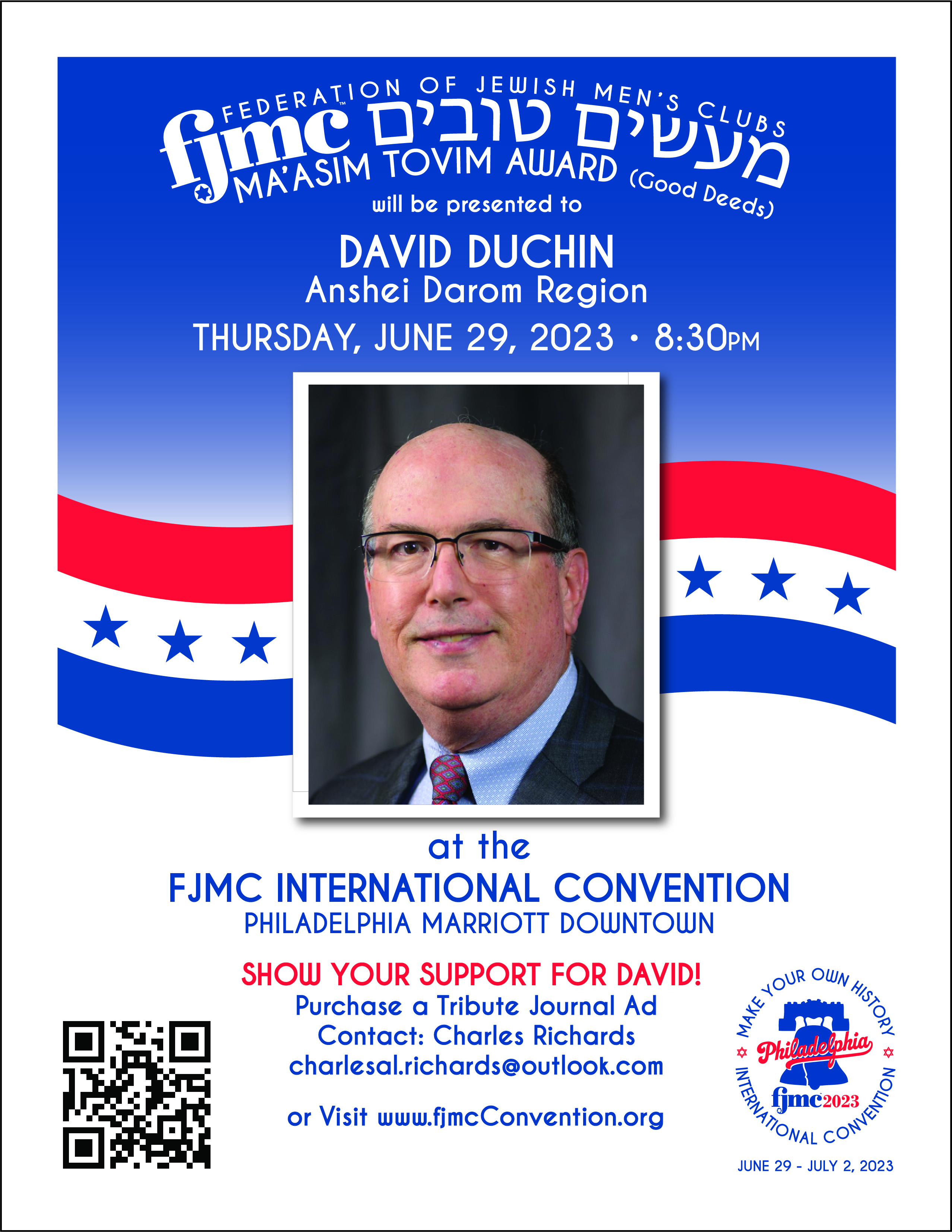 David Duchin was born and raised in San Antonio, Texas where his family were members of the reform congregation, Temple Beth-El. As a teen, he was president of the local youth group, SAFTY and vice-president of the region TOFTY. David attended the University of Texas in Austin where he earned a bachelor’s degree in electrical engineering and a master of business administration degree. He met Rhonda in Austin during the fall of 1982 and they married the summer of 1985 in Dallas where they made their home. They raised three children: Melissa, Steven and Jeremy. Each have graduated college, reside in Dallas, and belong to Congregation Beth Torah. In 2021, Melissa married Lance Friedensohn, who has a son from a prior marriage. Rhonda and David were thrilled to have become instant bonus grandparents to an eight-year-old affectionately named “little” David. David's career has primarily been in information technology, working as a consultant with a Big Six Accounting firm, and later in industries such as Incentive Travel, Mortgage, Real Estate, and Direct Mail Marketing. David has enjoyed photography since his teenage years and in 2007 founded an event photography business which provides traditional photography services, as well as a green screen photo booth with instant prints. David is a member of Congregation Beth Torah in Richardson, Texas – a suburb of Dallas. He has served on the synagogue board as Publicity co-chair for two years; an At-Large Board member for two years; and Membership Co-Chair for one year. He is serving in his second year as Development VP, which includes serving on the Executive Team. He has been an active member of the Men's Club at Beth Torah and served on the Men’s Club board in the roles of Succah Build Chair, At-Large Board member, and Vice President. David served as President for two years during which time the club experienced over a 20 percent increase in club members. David continues to serve on the local club as Immediate Past President. He served seven years as a member of the Dallas Kosher BBQ Championship committee, which earned the Gold Torch Award in the category of Community Outreach and earned the coveted Chairperson’s Torch Award at the 2017 FJMC convention. David is very proud to be part of a local club with great leaders and mentors. Beth Torah Richardson has earned the FJMC Quality Club every year except for the very first year it started. Since David’s attendance at convention, the Southwest region was merged with Anshe Darom. David has served as one of the two Anshei Darom regional representatives on the FJMC board. He was one of the founding co-chairs of the FJMC Photography Affinity group and is currently serving in his second year as Vice President of Anshei Darom. In mid-2021, David was selected as one of two Fellows representing Congregation Beth Torah in a year-long Board Improvement and Leadership Training program through a prominent National Foundation. This provided his shul with grant funding for a consulting project on board improvement where he subsequently served on the steering committee. This program also provided his shul access to a dollar-for-dollar matching grant which will run through 2024. Throughout David’s time at Beth Torah, he has served as the “unofficial” photographer documenting events and getting articles and images published in the Texas Jewish Post. For many years, his photos of the city-wide World Wide Wrap and his photos of Beth Torah’s Reading of the Names program would grace the front covers of the Texas Jewish Post. He has twice been honored to receive the Beth Torah Volunteer of the Year Award. David has also volunteered his time and photography services for many Dallas charity events over the past decade. Rhonda and David were selected and completed the Federation Young Leadership training program back in the 1990’s. Currently, Rhonda and David volunteer on a monthly basis at the AT&T Performing Arts Center in their ushering program. In addition to his volunteer activities, David enjoys tennis, chess, photography, and computers. He recently completed his certification in a Continuous Improvement & Six Sigma Green Belt training program. |