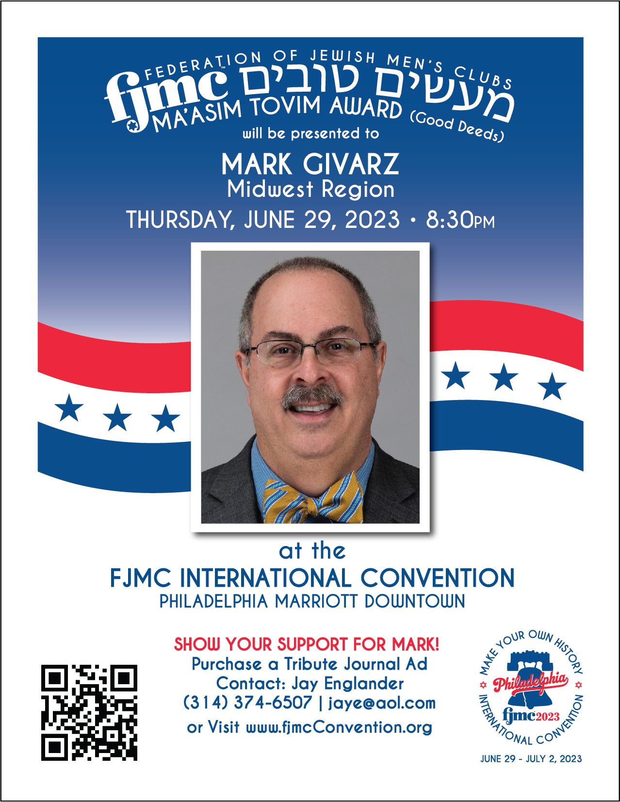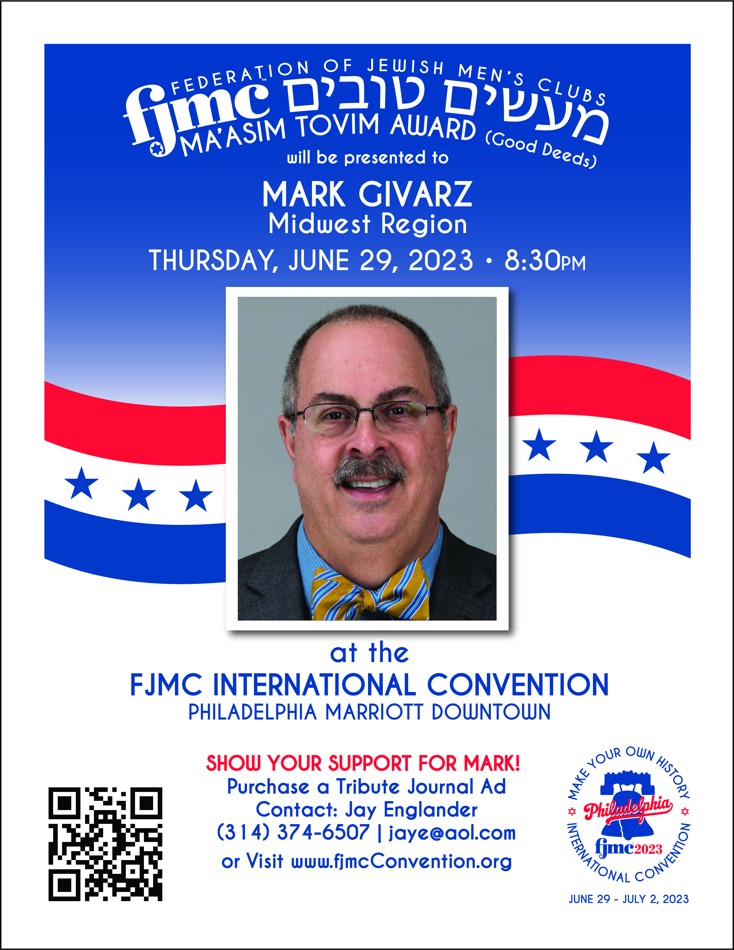 Mark’s FJMC journey began in 2001 when he moved to St. Louis, Missouri from Tampa, Florida after accepting a position as quality assurance team lead with SBC, now AT&T. The Salisbury, Maryland native is a graduate of the University of Maryland, Baltimore County. Once settled in Missouri, Mark, his wife, Alyce (who have now been married 38 years), and their three kids joined Congregation B’nai Amoona in the St. Louis suburb of Creve Coeur. He affiliated with the synagogue’s men’s club, volunteered to assist with varied projects, and was elected club president in 2007. His affiliation with men’s group activities expanded as he became engaged in FJMC Midwest Region activities. Mark first served a retreat chair and later as vice president and Region president, 2017-19. Mark also volunteered and has served FJMC International in numerous capacities. These roles included convention “program fair” chair in 2015; representative of Hearing Men’s Voices and IT committees; chair of the Leadership Development Institute; FJMC secretary, 2019-21 and as FJMC member at-large, 2021-23. Additionally, he serves on these committees: Future of Conventions, Vision of the Future of FJMC, and the FJMC Executive Search committee. In 2021, Mark & Alyce retired from their full-time occupations and relocated to Palm Coast, Florida. They now enjoy walking on the beach, getting involved in their new synagogue, Congregation B’nai Torah, Ormond Beach, Florida – where Mark is men’s club president – and traveling to see family and new destinations. The Givarz are the parents of Erin (married to Lee) of Austin, Texas; Glen of Las Vegas, Nevada and Steve (engaged to Laura) of Sarasota, Florida. They have a wonderful granddaughter, Ari Rose. |