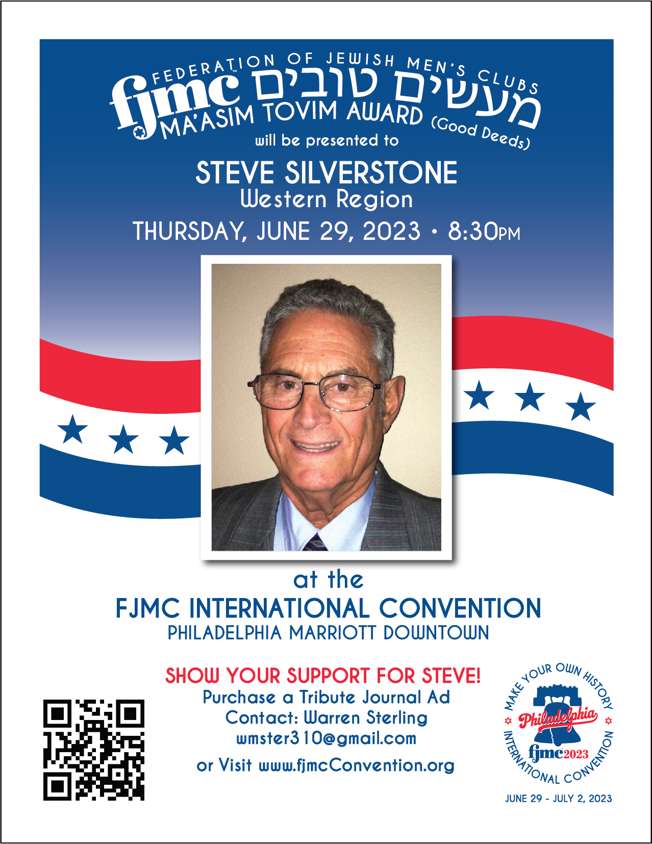Steven Silverstone was born in Los Angeles and attended Westchester High School. He had his bar mitzvah at Westchester Jewish Congregation which merged with Tikvat Jacob Beth Torah in Manhattan Beach. Steve was active in AZA in high school and became the President of his chapter. At Westchester High School, Steve played some football and was on the swimming team. Steve then attended the University of Southern California (USC) for undergrad and majored in Industrial Engineering. At USC Steve was a member of the Trojan Knights. They were involved in doing card stunts with the fans at USC Football games during the games. Steve is still huge USC Football fan and has season tickets to all the home games. While in college Steve’s fraternity brother had a cousin, Ronnie Gordon who at the time was a freshman at Ohio State University. She joined her father in LA when he was a visiting professor at USC for the summer. Ronnie and Steve met during that trip. During the following winter break Steve took a 3 day train ride to Akron Ohio to see Ronnie. A couple of years later Ronnie transferred to UCLA and lived with her aunt in LA. They married after 3 years of dating and began a family in the LA area. They have two daughters, Cheryl married to Jim Niekamp who live in Atlanta with 3 children and Deborah married to Greg Hersberg who live in Thousand Oaks, California with two children. After undergrad, Steven went to grad school at USC to continue his major of Industrial Engineering. Steve then went to work for Electro Form Inc for 17 years and retired in 2009 from his last job at Northrup Grumman where he was Mission Assurance Manager. We wish Steven Silverstone a hearty Mazel Tov on his being chosen the Ma’asim Tovim Honoree for the Western Region. Throughout his life, Steven was always the one to get involved and make a difference in every synagogue or organization he gets involved in. He is truly a doer of good deeds and has more than earned the recognition to receive the Ma’asim Tovim award from the Western Region. We look forward to honoring him and his fellow Ma’asim Tovim honorees at the FJMC Biannual convention June 29th thru July 3rd 2023 in Philadelphia. |
